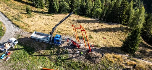 Eine rote Form erhebt sich, leicht und entschieden zugleich. Sie scheint aus dem Boden des Kronplatzes zu wachsen, als hätte der Berg selbst sie hervorgebracht. Klare Linien, ruhiger Rhythmus – eine geometrische Übersetzung der Dolomiten. „Alpine Geometry“.