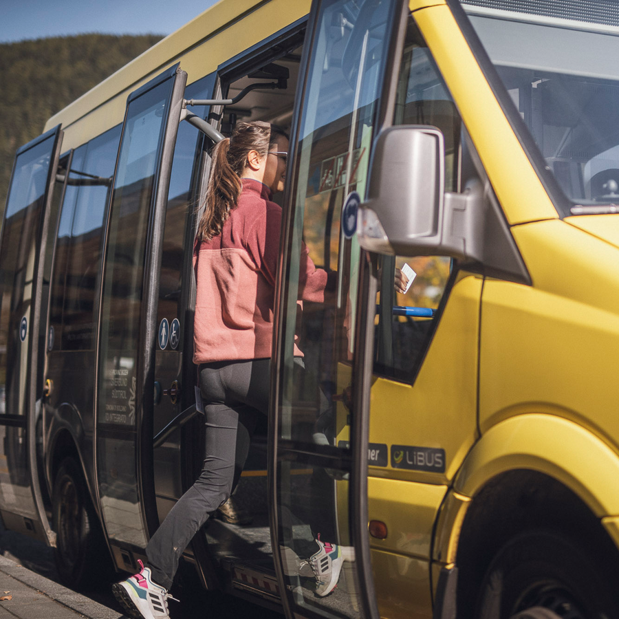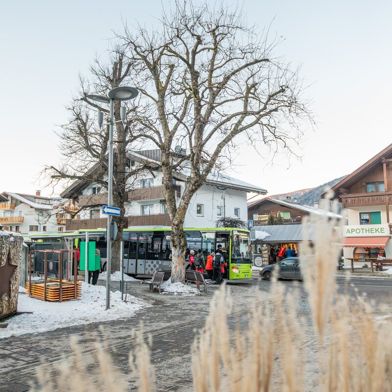 The ski bus service in Olang is a prime example of a modern and environmentally conscious transportation solution. Numerous stops are equipped with ski racks and detailed information.