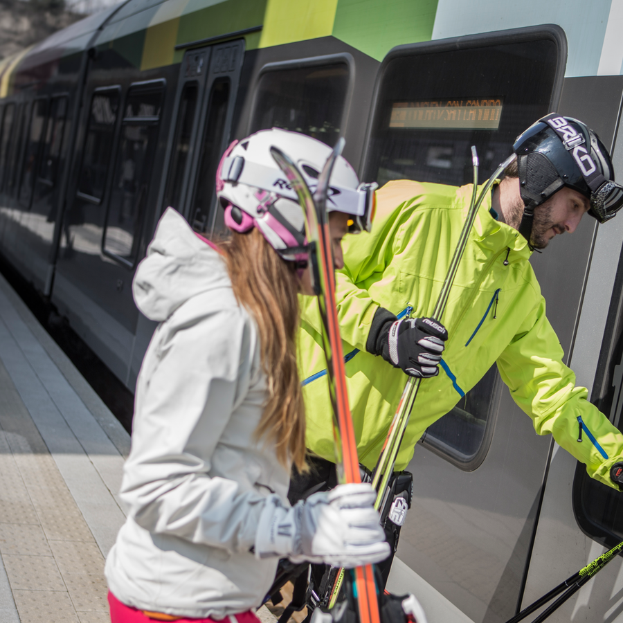 Kronplatz Guest PassWith the connection of the ski lift facilities to the railway network, the possibility exists for all skiing vacationers to do without their own cars when traveling locally and instead to use the Ski Pustertal Express for their daily transfers within the Kronplatz Ski Area. Anyone who gets off in Perca-Percha can climb right into a cabin of the Plan de Corones-Kronplatz Ried circulating cableway. In addition, the connection with the Ski Train makes it possible to commute every thirty minutes between the two ski areas of the Plan de Corones and the Dolomiti di Sesto-Sextener Dolomiten with the railway connection of the Monte Elmo-Helm valley terminal in Versciaco-Vierschach.